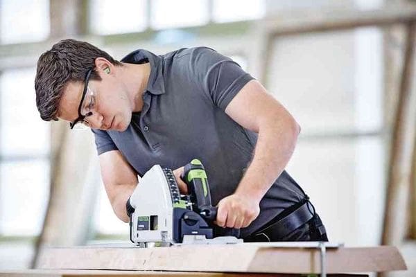 One excellent feature is the ultra-flat and, thanks to the inward-pointing extractor connector, completely flat housing. With no body, it is possible to saw close to the edges with a minimum 12 mm wall spacing. Available with a viewing window or splinter guard, the TS 55 R gives you even more control and perfect results. Another key feature is the newly developed spacer wedge. It stands out in front of the saw blade, provides safety and guarantees precise positioning in existing saw cuts. There is also an extended angle setting and a dual display for cutting depth adjustment. This ensures even more precision and easy operation. Overall the best circular saw we have ever made.